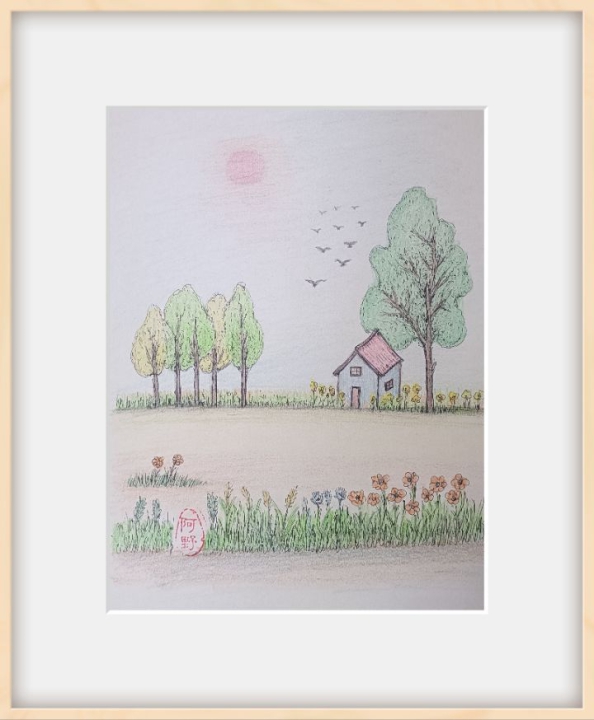 纯手工彩铅画,10寸,20cm*25cm,已装裱带框,30元一幅。...
